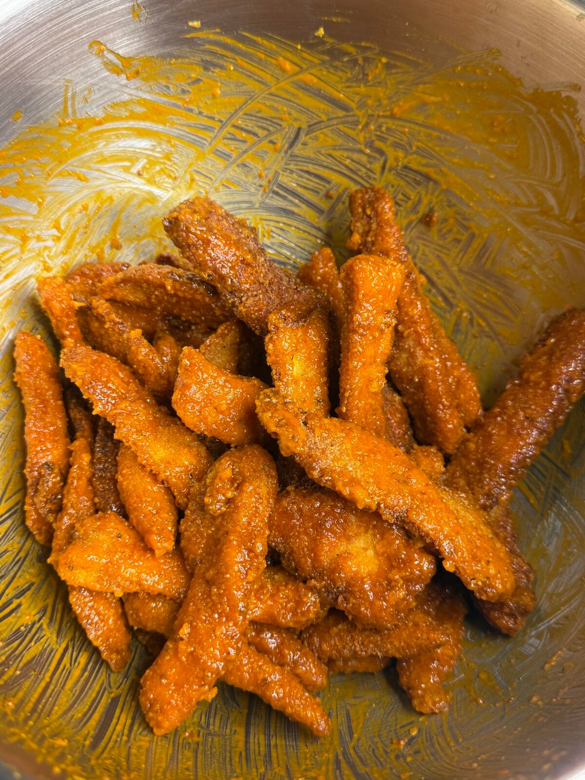 The idea hit me early one morning and once it did, there was no un-thinking it. I wanted the satisfaction of a chicken wing, the crunch of a classic cutlet, and the snackability of fries. The solution was simple, take my go-to cutlet method and change the shape.