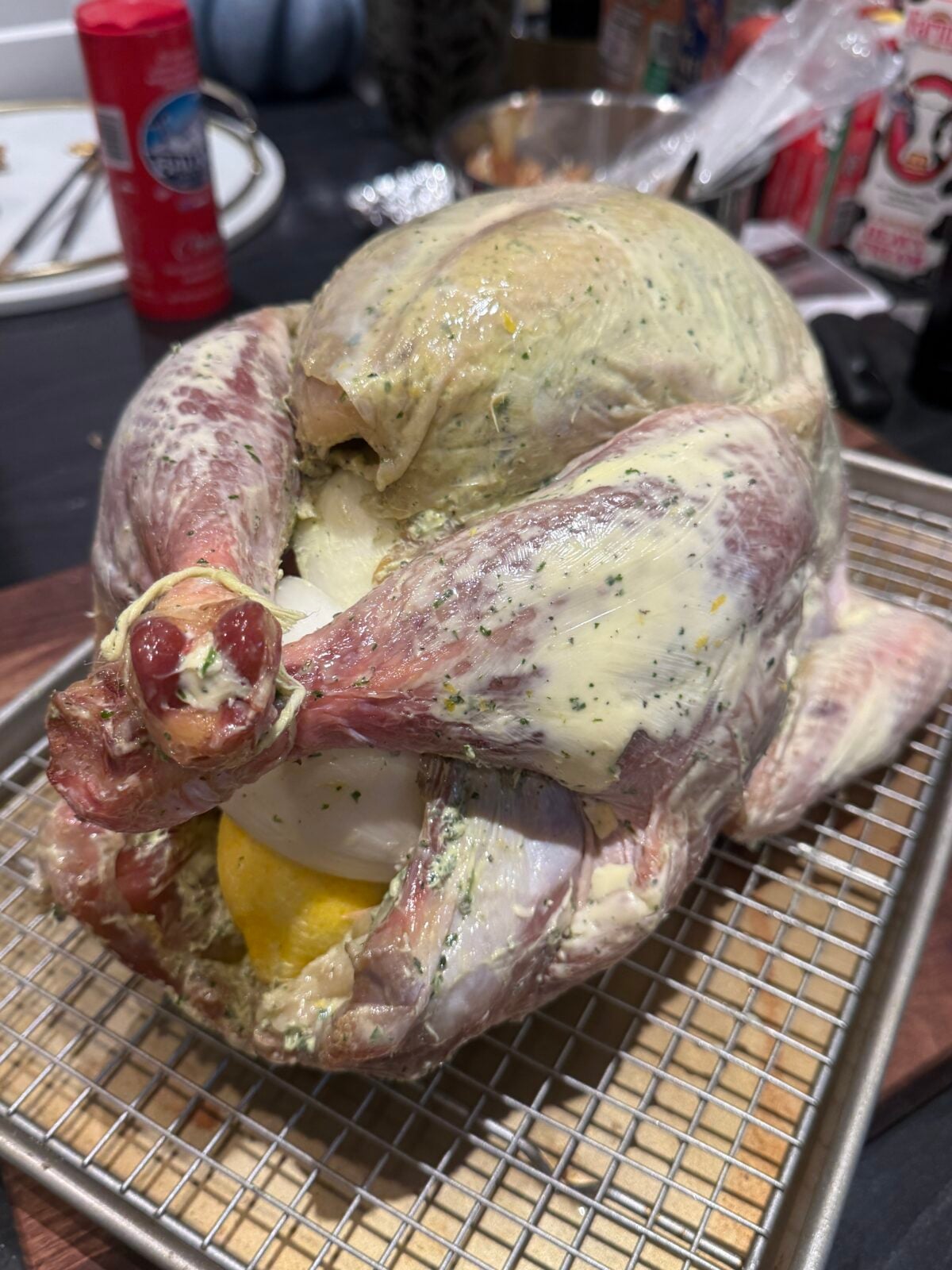 Once injected, place the turkey back in the fridge uncovered overnight. That’s your built-in flavor rest.